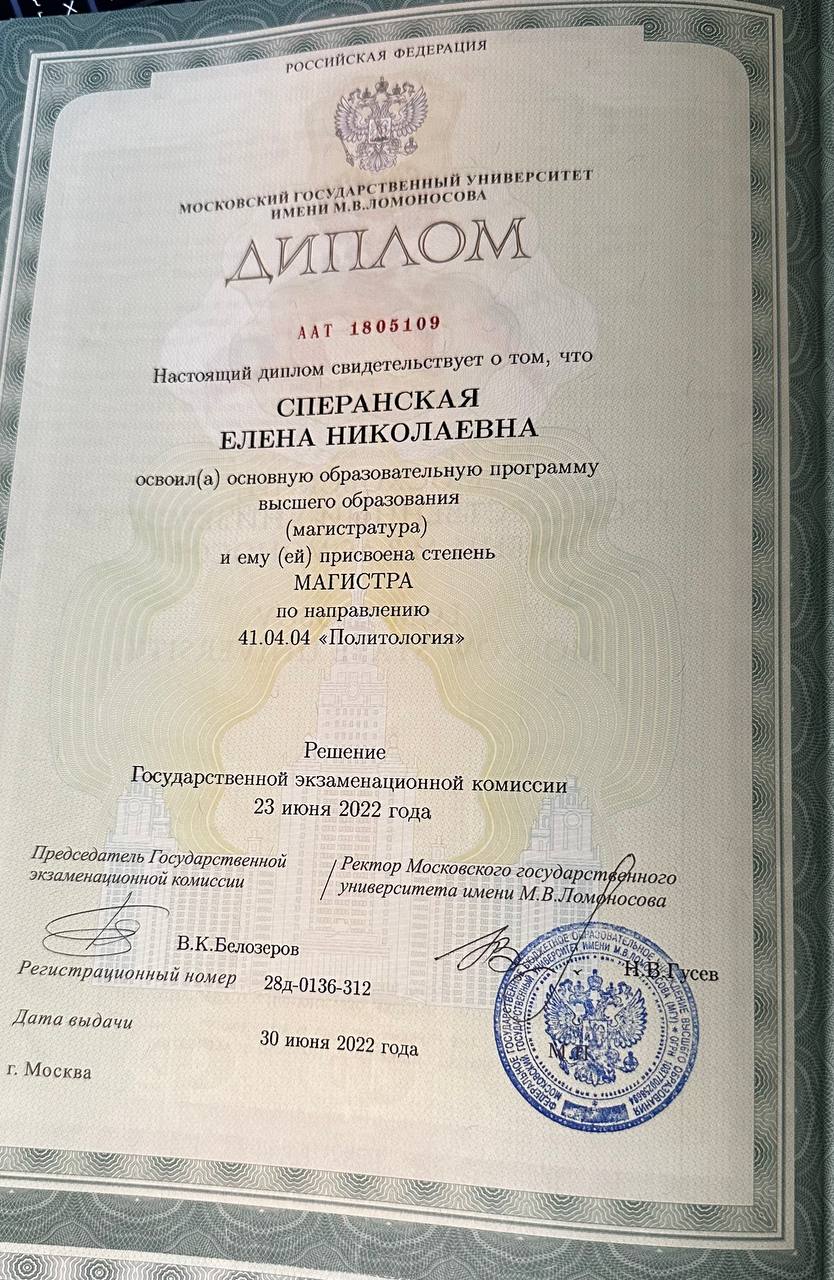 Добрый день! Меня зовут Елена Сперанская. Окончила Московский государственный университет имени М. В. Ломоносова по специальности «Политология». Более 6 лет осуществляю подготовку к ОГЭ и ЕГЭ по истории и обществознанию. В настоящее время являюсь учителем истории и обществознания в частной школе. Моя цель — донести до учеников необходимые знания, умения и навыки для освоения школьной программы и успешной сдачи государственных экзаменов. В то же время я стараюсь делать так, чтобы ученики не только владели теоретической информацией, но и получили интерес к предмету. Занятия со мной проходят в обстановке сотрудничества, доброжелательной и демократической атмосфере. Вместе мы прикладываем все силы, чтобы благополучно сдать экзамен. Также на занятиях я стремлюсь дать ребятам веру в себя, показав им, что каждый может добиться поставленных целей. Я горжусь результатами своих выпускников! Многие из них поступили в университеты мечты. Получив высокие баллы ЕГЭ (история — 90 баллов и обществознание — 95 баллов), мои ученики сейчас являются студентами МГУ имени М. В. Ломоносова, РЭУ имени Г. В. Плеханова, НИУ ВШЭ и МГИМО. До встречи на занятиях! С уважением, Елена