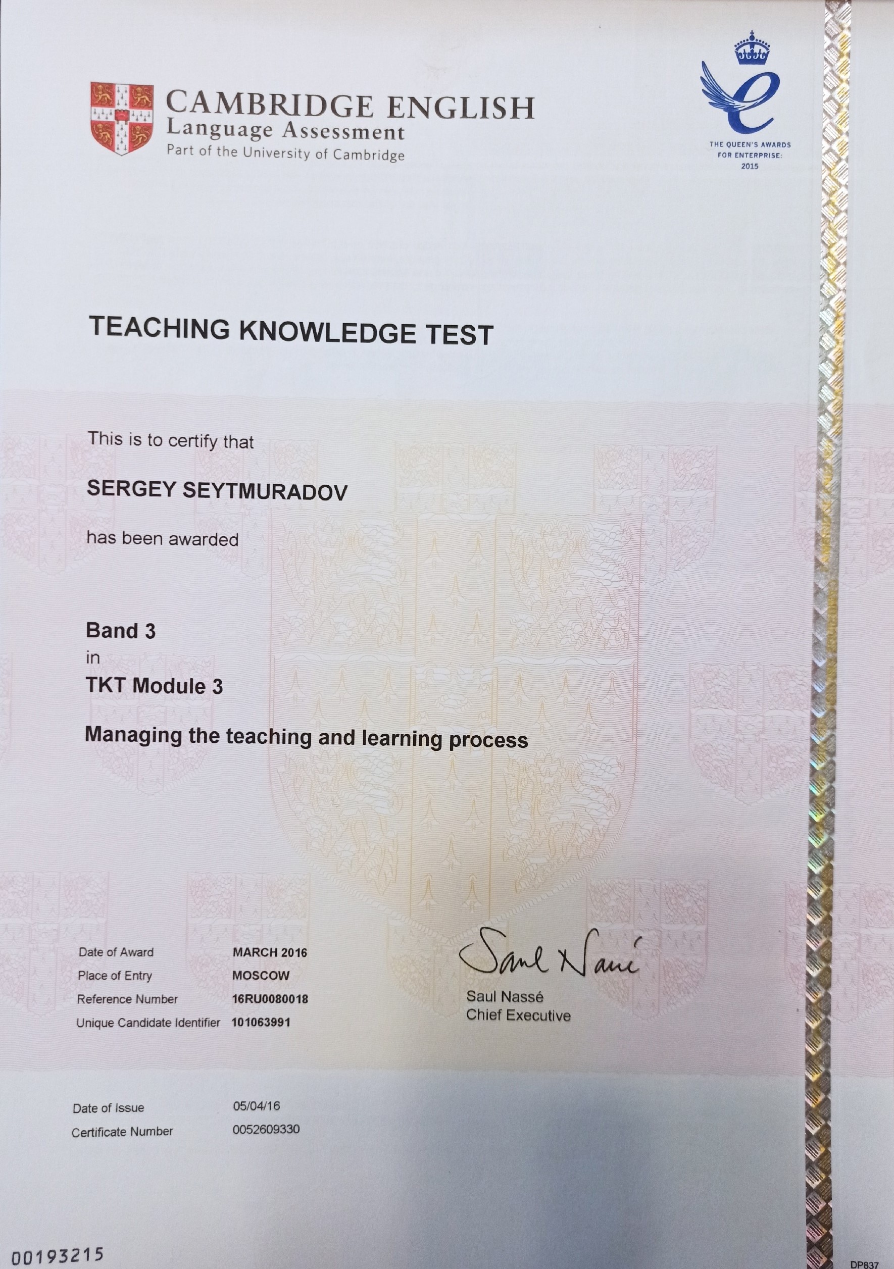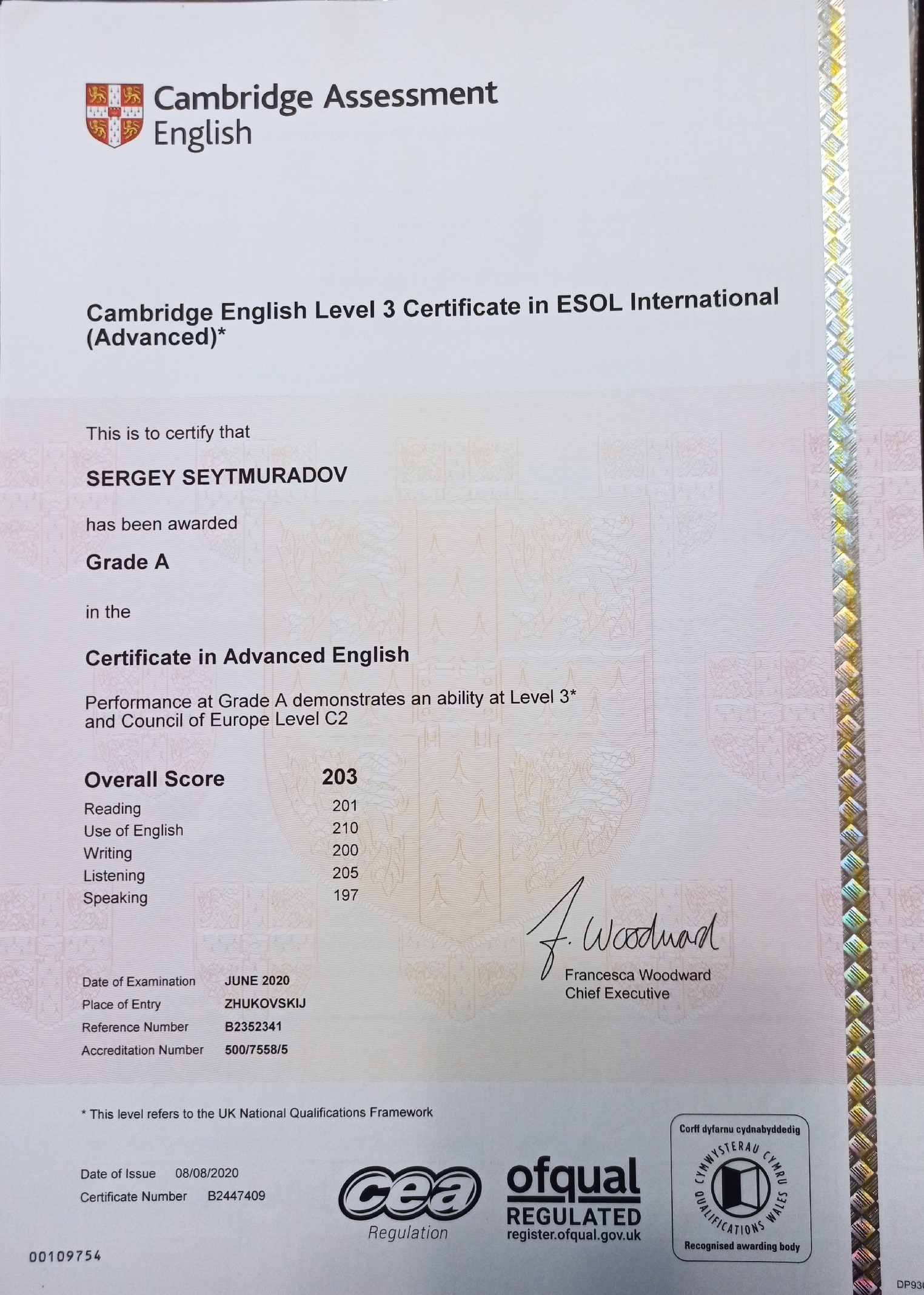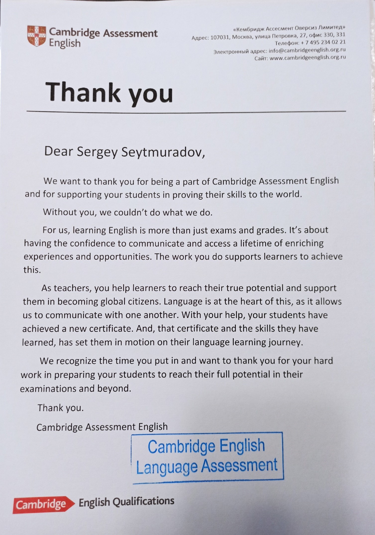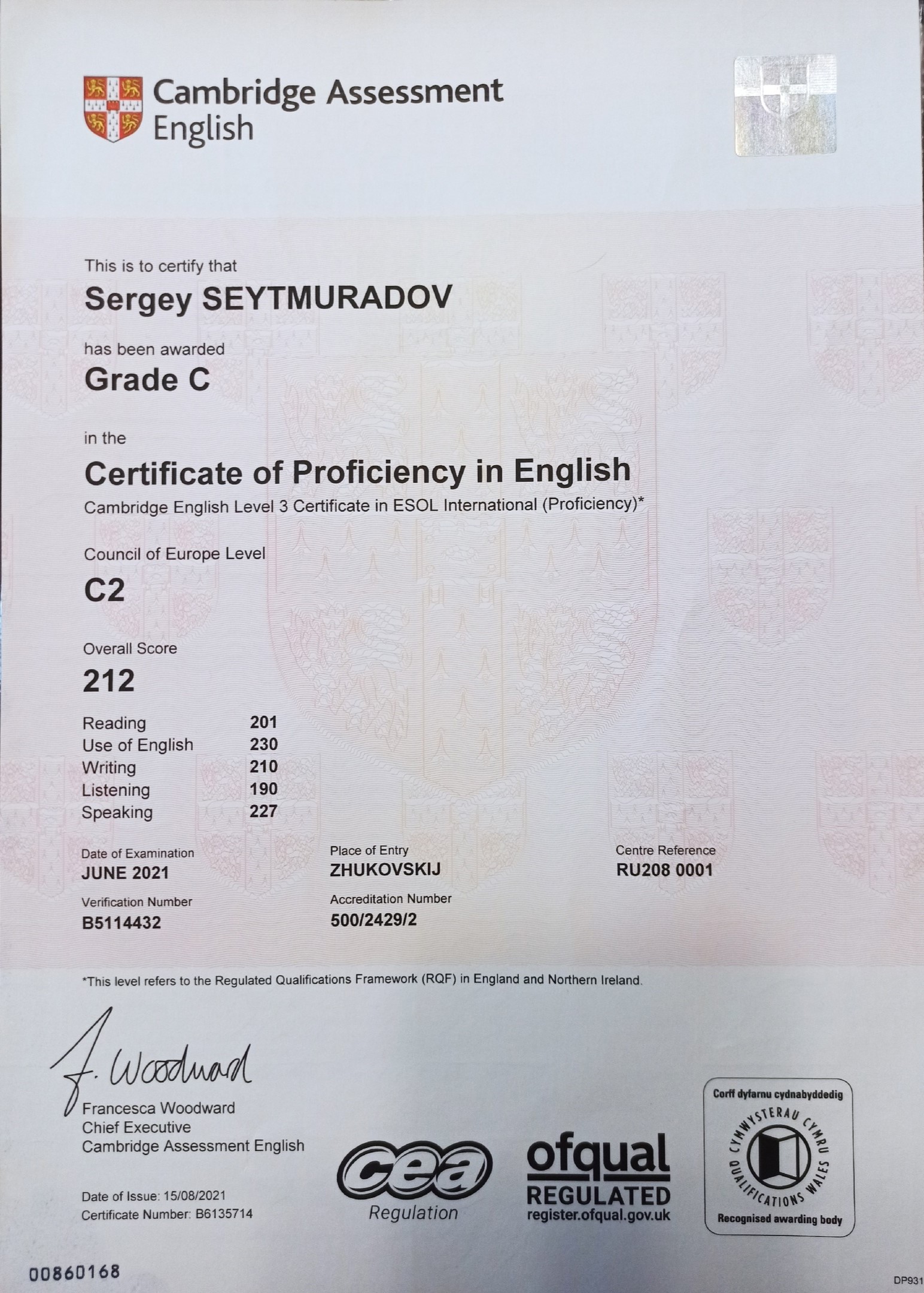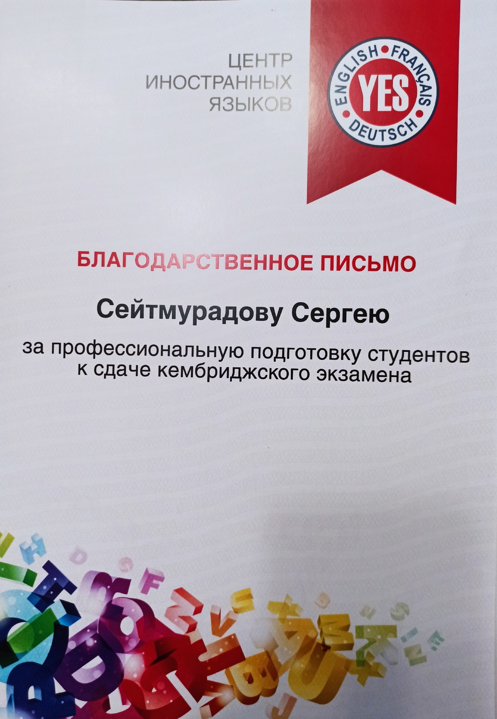 Hi there! Меня зовут Сергей, я преподаю английский более 10 лет. Я профессиональный преподаватель, о чем в моем вузовском дипломе с отличием, без единой четверки, так и написано. Я успел поработать и в государственной школе, и в частных. Был обычным преподавателем и методистом (в школе это должность завуча). И это значит, что я четко выстрою учебный процесс при работе с Вами, ведь мне доверяют для такой задачи целую школу! Cтажировался в Ирландии. Изучал и сам язык, и методику, то есть как его преподавать. Получил международный сертификат, подтверждающий уровень владения языком С2 Proficiency. Также сдавал и имею сертификаты САЕ (уровень С1) и FCE (уровень В2). То есть я сам прошел всю линейку экзаменов высоких уровней😉. Ко мне обычно обращаются с запросом о сдаче кембриджских экзаменов. Своим студентам я доношу эту информацию с разных точек зрения, так как я сам и сдавал, и принимал эти экзамены в качестве экзаменатора. При таком подходе студент четко понимает, что от него требуется и что конкретно будет оцениваться в экзаменах, знает, где подводные камни и как об них не споткнуться ;). Также ребята хотят очень успешно сдать ЕГЭ, чтобы поступить на бюджет и поэтому мы усердно работаем над выверенной экзаменационной программой, проверенной годами и сотнями студентов. После прохождения курса ЕГЭ мои студенты и выпускники сейчас учатся в самых топовых вузах страны, таких как МГУ, ВШЭ, РАНХиГС, МГМУ им. Сеченова, РУДН, РГГУ и других престижных и узнаваемых, что экономит родителям миллионы рублей, так как обучение в этих вузах в среднем стоит дороже 500 тысяч рублей в год. В этом году мои студентки поступили в РАНХиГС и РУДН на БЮДЖЕТ благодаря отличным баллам по ЕГЭ. Одна из студенток получила 100 баллов за экзамен, прошла на бюджет в первый мед (Сеченовку), потому что медикам тоже нужен английский. За предыдущие годы накопилось более 100 студентов, сдавших международные экзамены. В учебном году 22/23 мои студентки полетели в Армению, чтобы сдать экзамен на уровень С1, успешно с этим справились и вернулись из Еревана с сертификатами международного образца. Таким образом, ребята подтвердили свой уровень на международной арене, сдав языковой экзамен в другой стране. Также мои студенты сдали ОГЭ по английскому в среднем на 64 балла из 68. Пятерка начинается с 58. Своим студентам я обычно говорю, что я тот самый преподаватель, который максимально может прочувствовать их боль, понять и простить:). Ведь я сам сдавал и ОГЭ, и ЕГЭ. А потом принимал их. В последние годы я также помогаю руководителям онлайн и оффлайн школ с методической работой, принимаю международные экзамены, езжу в центры иностранных языков как приглашенный спикер. Мои студенты живут счастливо не только у нас в стране, но и в Дубае, и в Тайланде, на Шри Ланке и в Турции, в Черногории и Америке. Среди моих студентов есть как дошкольники, так и умудрённые опытом люди. Самому старшему студенту на сегодня 76 лет, а изучать язык он начал в 73. Человек хотел свободно путешествовать и быть в курсе происходящих событий. Вот уже 3 года как данный студент открывает мир благодаря английскому и недавно, вернувшись из Хорватии, привез с собой дневник путешествий, где на английском писал о своих эмоциях и событиях, происходивших с ним. Если Вы готовы погрузиться в мир английского с четкой целью и для получения желаемого результат