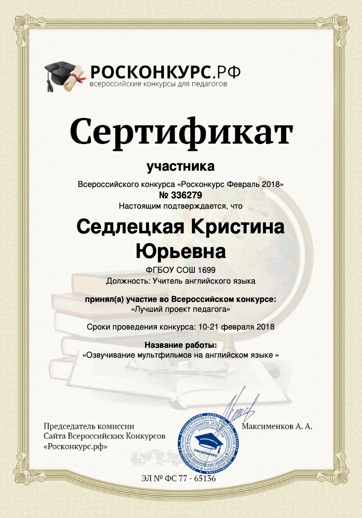 Помогу школьникам и взрослым в освоении английского языка. Высокая работоспособность, создание ситуации успеха, наглядное объяснение материала, применение интерактива. Включены британские методики преподавания. Индивидуальный подход к каждому. Автор курса Movie-translator — создание перевода к аудио-видео произведениям. Опыт работы: 2023 г. ГБОУ Школа № 1158, ТОП-80 лучших школ России, 29 место среди более 2000 школ г.Москвы, ежегодный лауреат Гранта Мэра Москвы. Преподавание английского языка: в лингвистических, лингво-математических, IT классах по углубленной программе (Starlight) -5ч./неделю и в обычных классах по базовой программе (Spotlight) -3ч./неделю. Дополнительные уроки по подготовке к ОГЭ по английскому языку в 9-х классах. 2019 г. Ассоциация школ «Образовательный центр Бейт Швидлер» школа для одаренных детей “Мир интеллекта", Москва. Преподавание английского языка (Starlight). Подготовка к ВПР, олимпиадам, ОГЭ. 2018 г. СОШ №1699 УД Президента РФ, Москва. Учитель английского языка по углубленной программе. Включены британские методики преподавания. Индивидуальный подход к каждому. Автор, переводчик, звукорежиссер проекта: "Озвучивание мультфильмов на английском языке". Действующий репетитор с 1999 г.