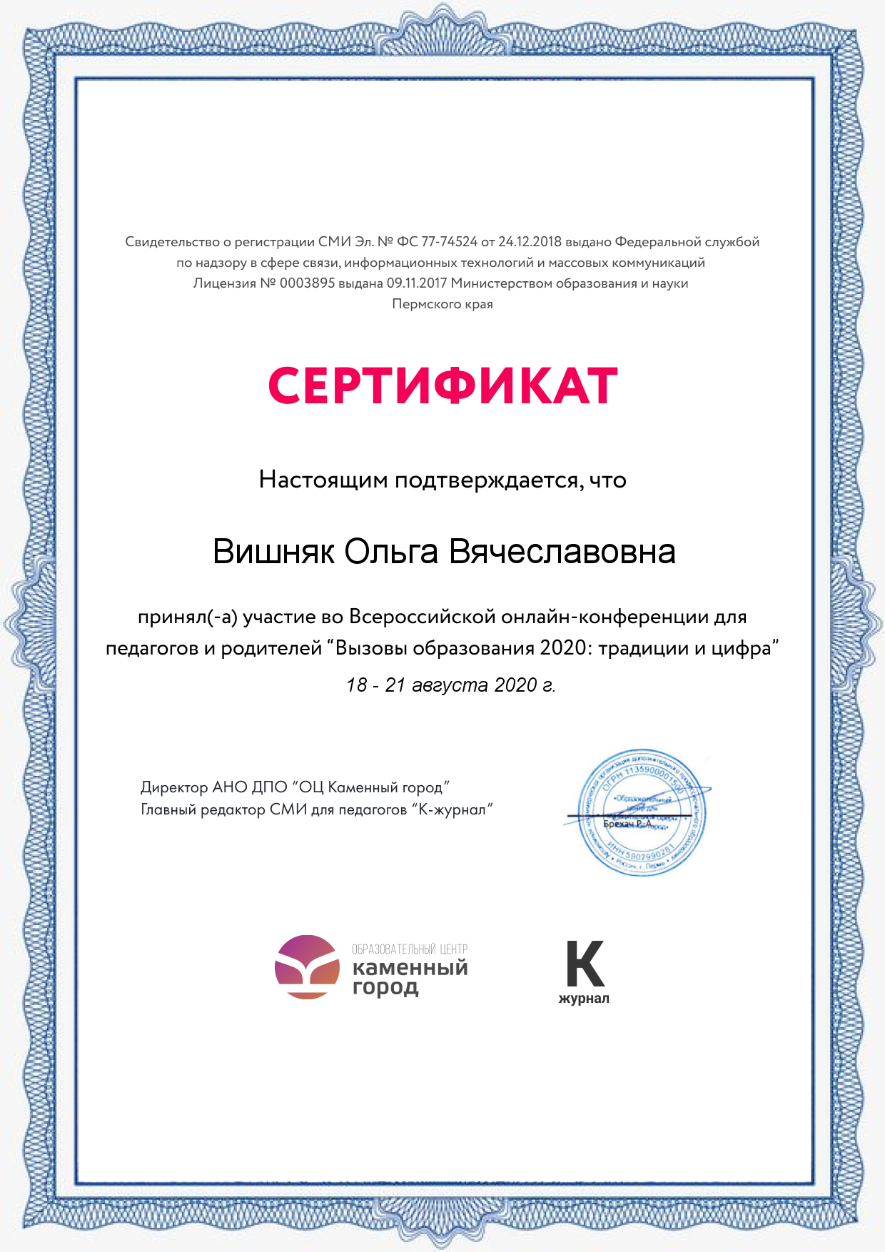Дипломы и сертификаты